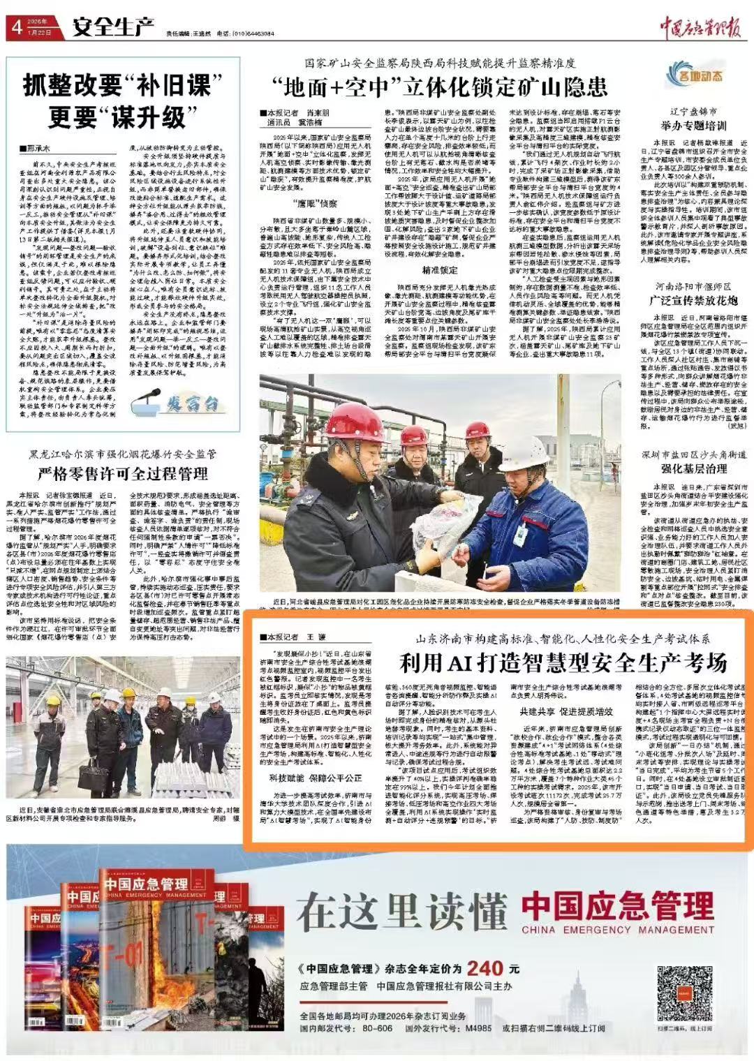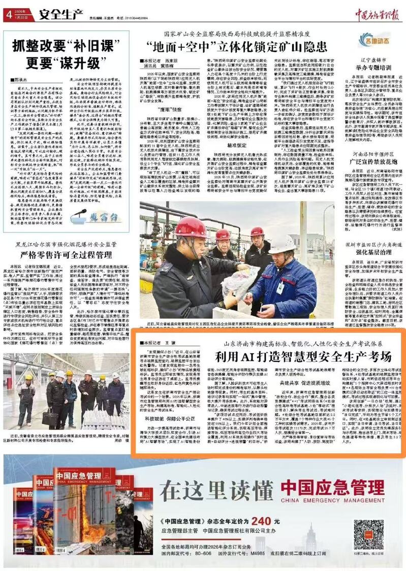 | 【中国应急管理报】山东济南市构建高标准、智能化、人性化安全生产考试体系 | ||||